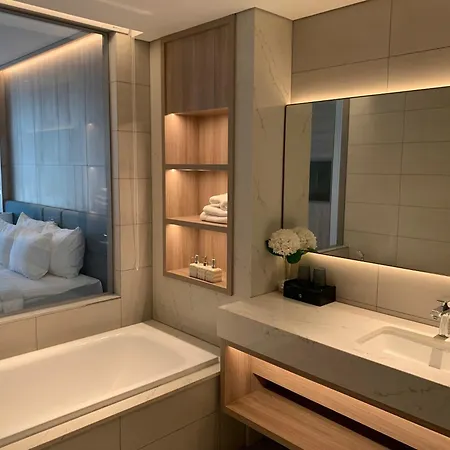 Die Unterkünfte bietet einen Ankleidebereich und eine Sitzecke und Annehmlichkeiten wie eine Klimaanlage und eine Waschmaschine. Diese Apartments bietet den Gästen einen Haartrockner, eine Duschhaube und Hausschuhe im Badezimmer. Außerdem findet man hier ein Bidet, eine getrennte Toilette und eine Dusche.